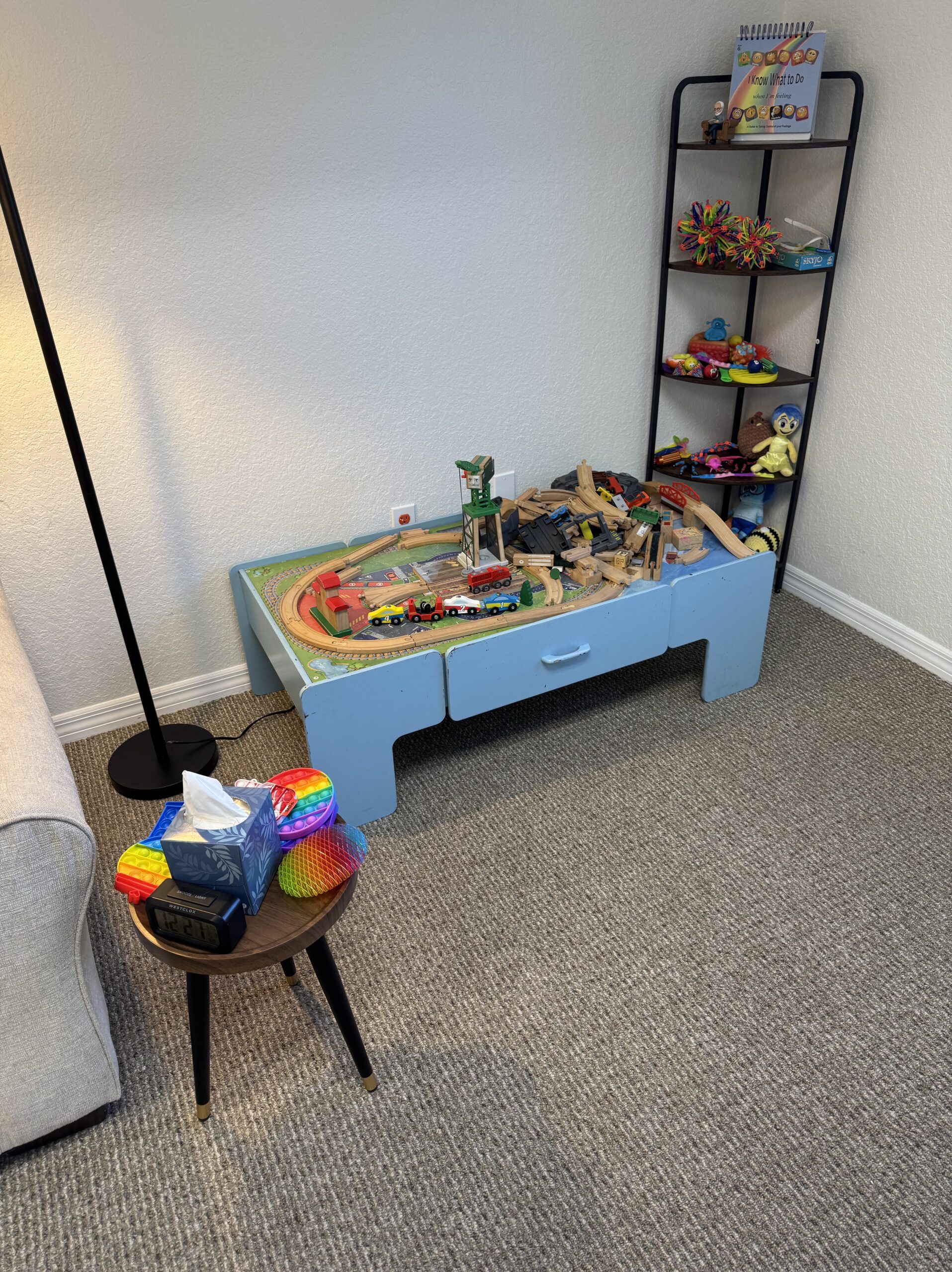 In my office (and sometimes on the floor, with games, art supplies, or fidget toys), kids find a space where they can laugh, talk, and learn new skills in a way that feels safe and natural.