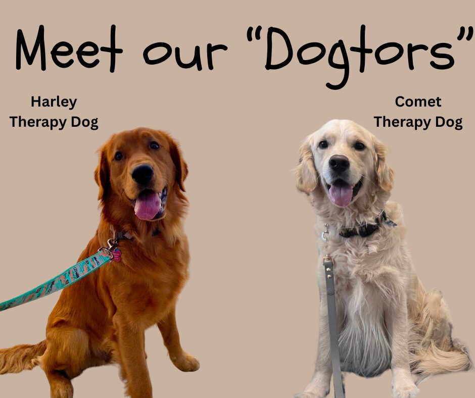 Therapy dogs help reduce stress, soothe big emotions, and support calm, steady regulation during sessions.